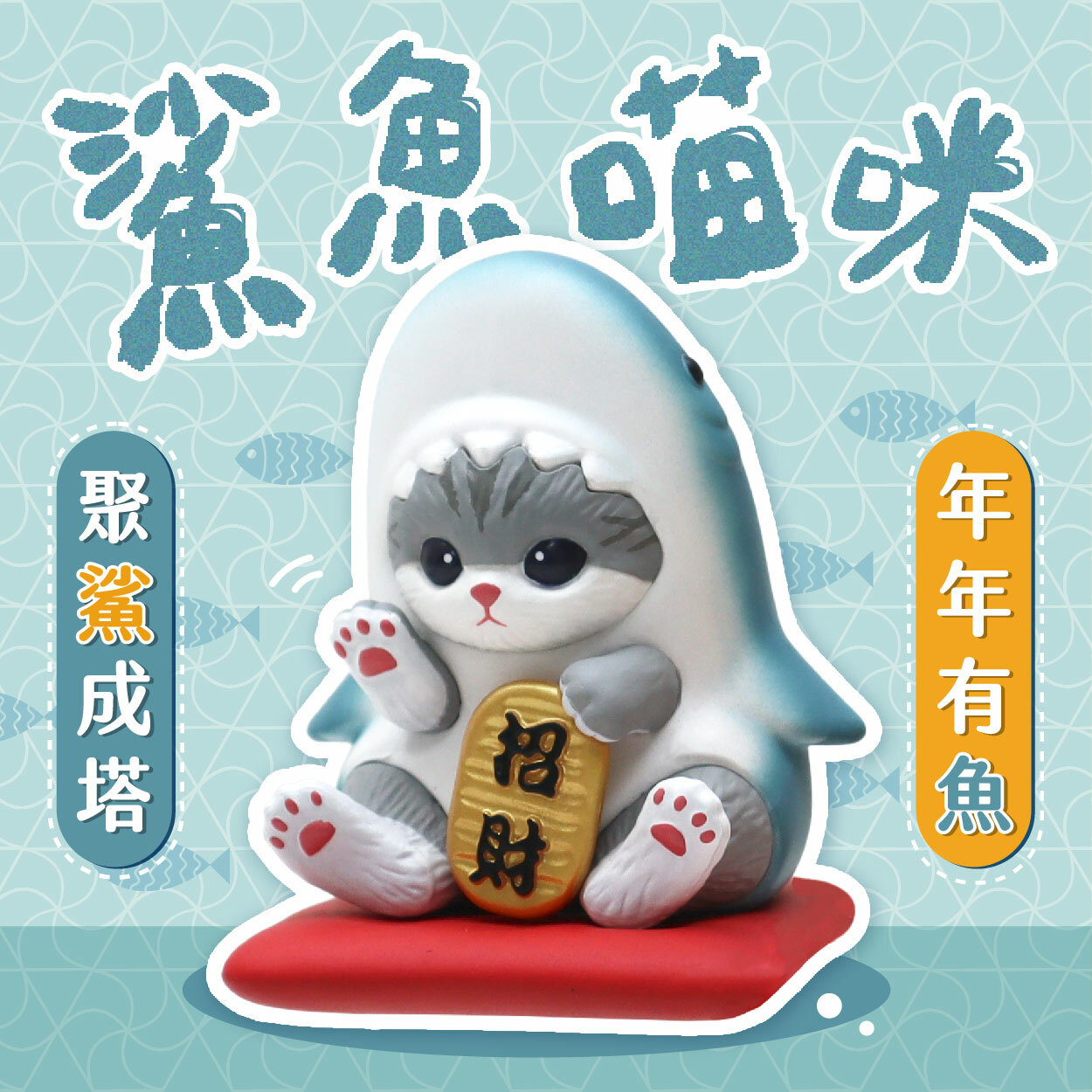 鯊魚貓咪「舉右手」,代表招財金運,財源如魚得水滾滾來!